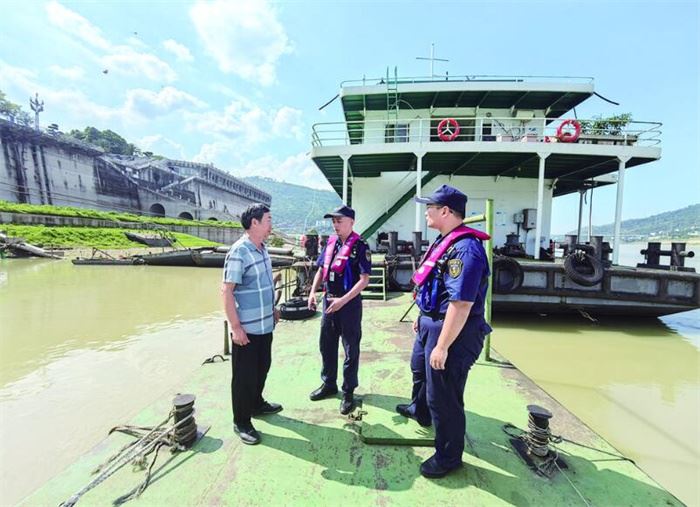 24853 次浏览 07-01海事执法人员对停泊船只开展安全检查和提醒 陈松 记者 夏雷 摄受上游持续强降雨影响,6月28日11时,乌江流域今年以来最大洪峰过境涪陵。涪陵海事处充分利用干支应急联动机制,通过“信息共享+现场监管+科