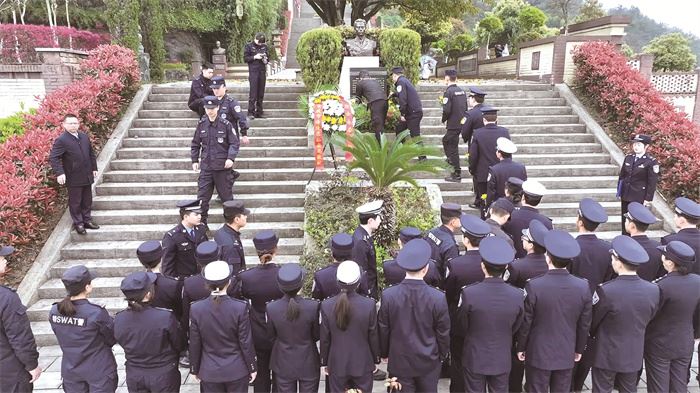 涪陵区公安局民警、辅警向烈士敬献鲜花在清明节前夕,涪陵区各级各单位积极组织党员干部、职工以及学生开展清明祭扫活动。活动中,大家怀着崇敬之情,深切缅怀革命先烈的丰功伟绩,大力弘扬爱国主义精神,赓续红色血